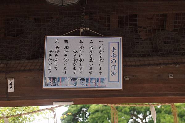 1:在手水舍的水盤中放置的杓子先用右手取一瓢水,清洗左手。