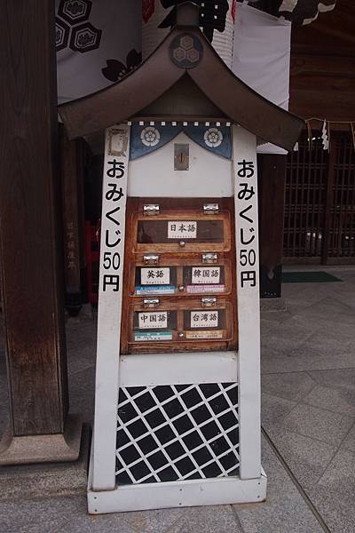 櫛田神社的求籤處不像是淺草寺在求籤後在藥櫃拿解籤文,而是投入50円硬幣後,打開箱子抽一個。