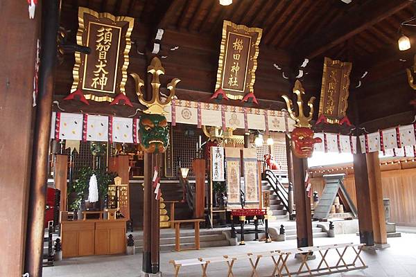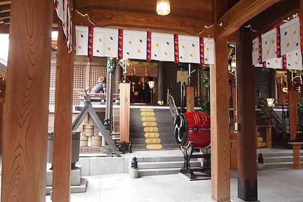 的左右),有一對風神和雷神;而這對風、雷神木雕是神社內眾多木雕之中最能幽默地體現博多氣質的一對,才知道要找找看的啦~~