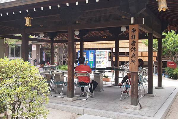 婆婆從拝殿回到正門,繞過休息處往前走。