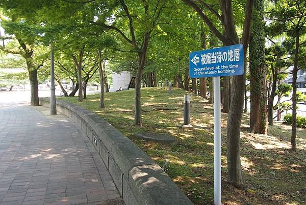 原爆中心地公園旁邊有一道樓梯(沿溪邊),通往原爆當時的地層。