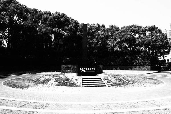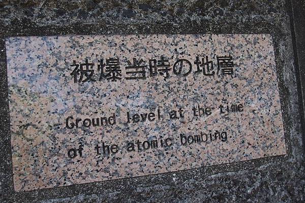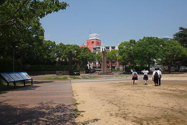 在這片遼闊的廣場上,豎立著一根黑花崗岩石的標柱;這根標柱意味著一場大災難的發生,這裡是原子彈落下的中心地點。