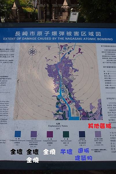 當時長崎市人口有240,000人,戰後估計死傷人數高達150,000人;長崎市以北一帶的建築物大約36%受到全面燒燬或破壞。