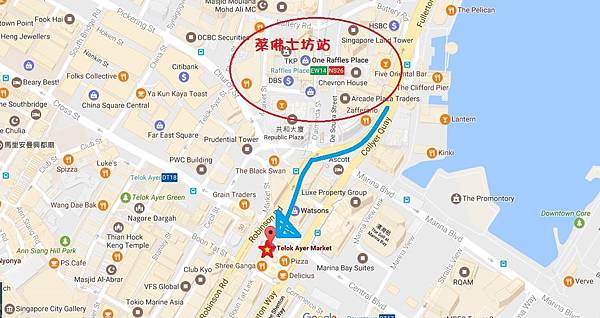 從其他地方出發的大家,也可以乘搭地鐵到萊佛士坊(Raffles Place)站(NS26 / EW14),然後步行至羅敏申路(Robinson Road)。![]()