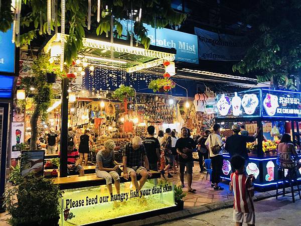 來到在暹粒的最後一天,我們終於回到這個心惦惦的地方 —— 飽吃一頓後,我倆便抓緊時間,趕快乘Tuk Tuk車前往暹粒著名的”不夜市集”「暹粒夜市/酒吧街(Pub Street)」。
