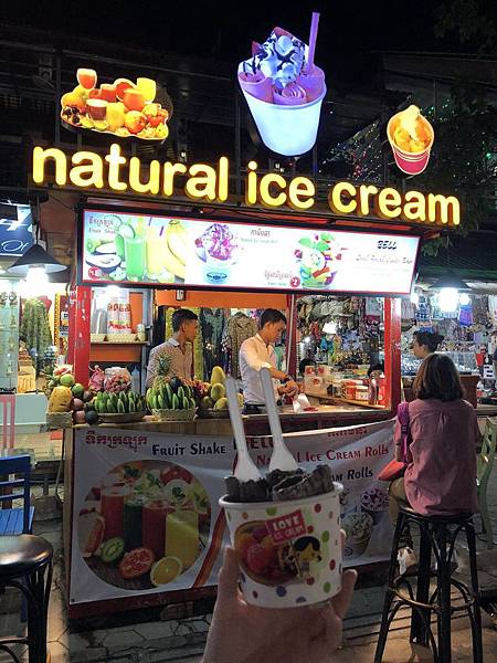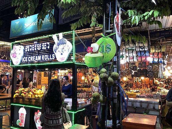 嘻嘻,婆婆也不喝酒啊!!!不過就算不去酒吧街喝酒,來夜市那邊逛逛街、買買土產、吃吃東西(對了捲雪糕!!果然我們腸胃還是非一般的差,最後2人都肚瀉了一個早上哈哈哈XDD應該與店家無關的啦!!)感受一下暹粒”夜生活”的熱鬧繁華~~也很不錯啦~~(推薦