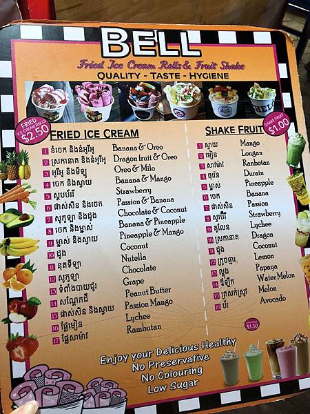 由於我們的腸胃都不是很好,因此來到柬埔寨這幾天,一直都是“避冷就暖(?)”的只吃熟食,不碰生冷食物、奶製品,深怕會狠狠地瀉肚子(特別在長車程時;不過嘛,現在行程也將到達尾聲,甚麼肚瀉、甚麼肚痛、甚麼迷失在洗手間(?)也不怕啦!!想吃,就放肆吃!!!(唉…話不能說太滿啊…