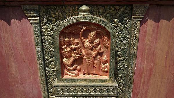*牆壁上畫滿了大大小小的佛畫,導遊說這些畫全是市民付錢托畫師繪畫,畫上寫著捐贈者的名字;