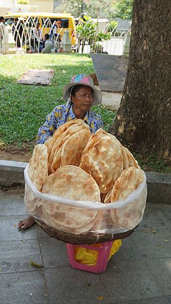 金塔山小廣場前有很多小攤檔,售賣柬埔寨特色的食品。
