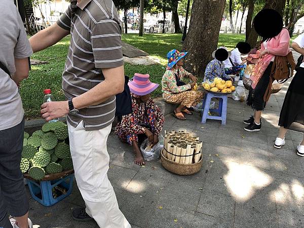 金塔山小廣場前有很多小攤檔,售賣柬埔寨特色的食品。