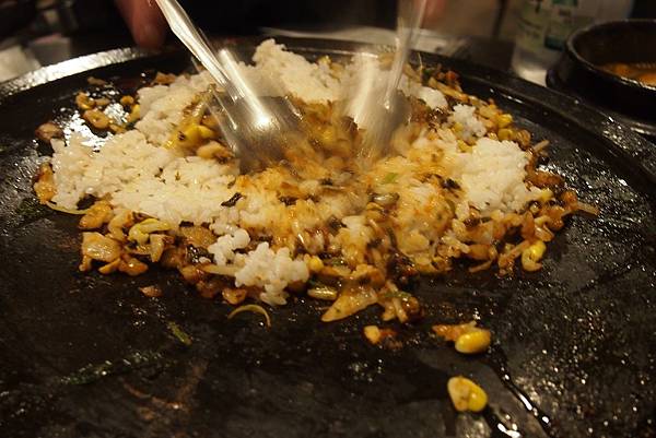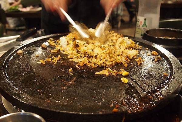 吃到最後精華來了!!鐵板上晶瑩剔透的肥豬肉其實婆婆和婆友已經吃不下,更多的是不想吃哈哈(?)叫起最後的炒飯,沒多久年輕哥哥拿著白飯過來,拿起剪刀,噢!老人家心感不妙了!