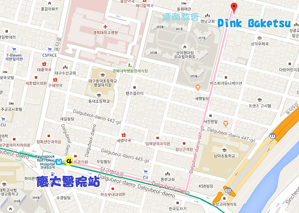 交通:乘搭大邱地鐵2號線到達「231-慶大醫院站(경대병원역)」,然後從4號出口到達地面,走約15分鐘。
