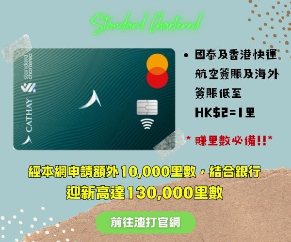 ✈️ 最佳里數信用卡:https://www.sc.com/cathay-card/
