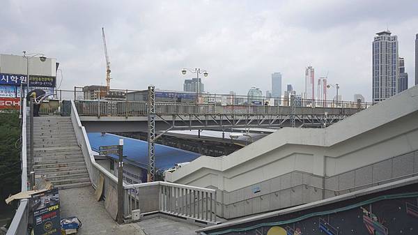 從鷺梁津站 2號出口到達地面後,走上前方的天橋便是囉