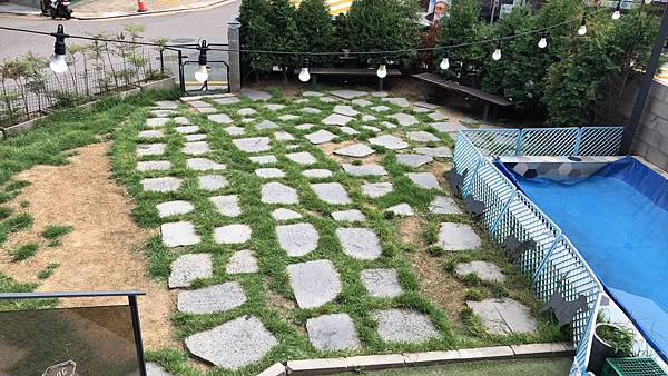 地下(店外範圍)是個讓狗狗們奔走的小花園和游泳池(?)