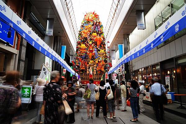 被稱為「傘鉾」的華蓋隨著博多松囃子隊伍在市內各處遊走,據說從華蓋下走過就能去病消災。