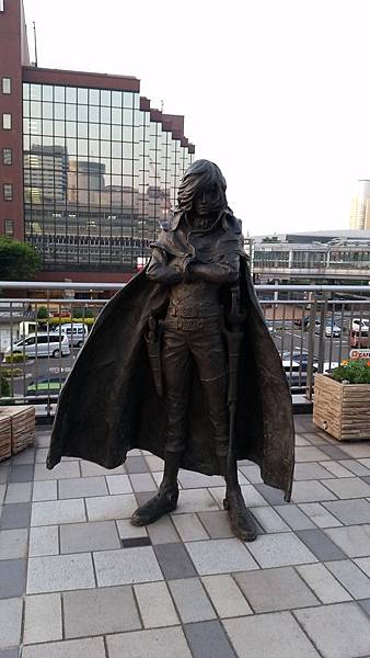 沿天橋往商場途中可看到「宇宙海盜夏羅古」的銅像。