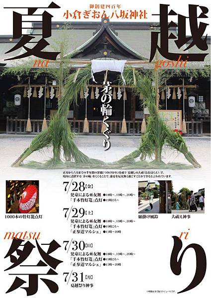 適逢今年是八坂神社創建四百年,因此神社在七月下旬會舉辦百年紀念大祭「夏越祭り」—— 以「回歸日本傳統、向未來傳遞的日本之心、描繪往後400年」為題舉辦的慶祝祭典。(雖然這篇是後補文![]()