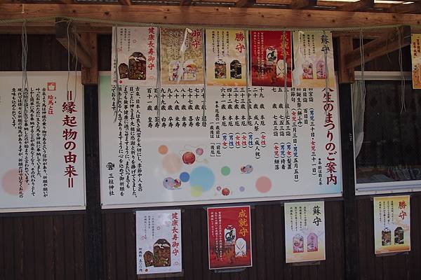 保佑成就.就職.復興.愛情的「三柱神社」,每年均吸引不少信眾來神社參拝,而參拝者在離去前亦會購買祈求願望成真的御守。