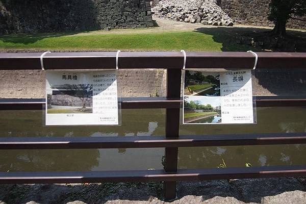 歷經戰爭破壞後重建的「熊本城」,即使熬過了人禍,卻避不了天災;於2016年4月14日,熊本縣發生多起震度逾6級的地震,其中16日的主震規模更強達7.3級;飽受摧殘的熊本城,除了天守閣的瓦片剝落,多處城牆石垣及建築更因地震而崩塌,受到極大破壞。
