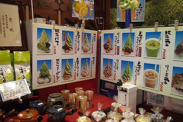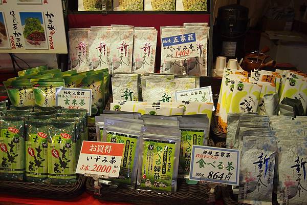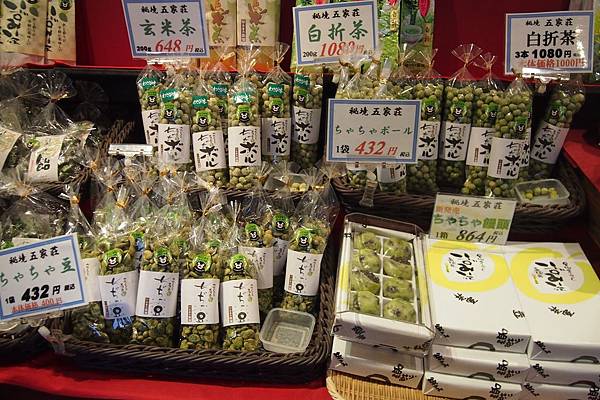 這家綠茶專門店除了出售自家品牌的綠茶外,還有糖果、餅乾、草餅等……