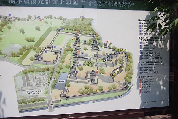 又聽聞,由2016年起,修復熊本城的努力已經正式開始;除了預計熊本城天守閣於2019年修復,整座城的修復也希望能在20年內完成,而完全修復及復原的日期則(預計)定於2036年。