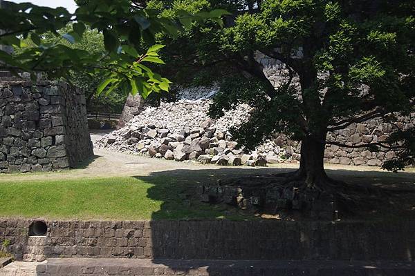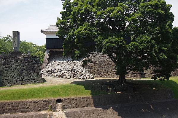 歷經戰爭破壞後重建的「熊本城」,即使熬過了人禍,卻避不了天災;於2016年4月14日,熊本縣發生多起震度逾6級的地震,其中16日的主震規模更強達7.3級;飽受摧殘的熊本城,除了天守閣的瓦片剝落,多處城牆石垣及建築更因地震而崩塌,受到極大破壞。