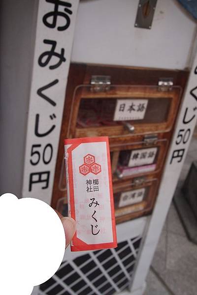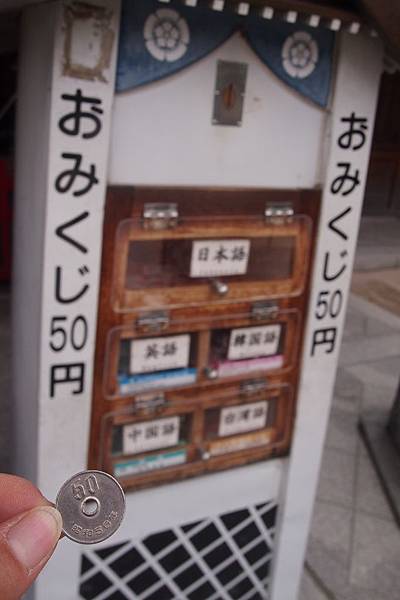 櫛田神社的求籤處不像是淺草寺在求籤後在藥櫃拿解籤文,而是投入50円硬幣後,打開箱子抽一個。