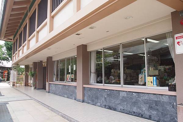 婆婆從拝殿回到正門,繞過休息處往前走。