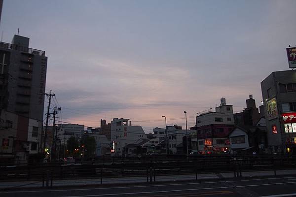 是日婆婆來屋台的時候接近黃昏,落日的餘暉仍支撐著光芒,藍紫透粉、粉橙相間的彩霞剎是美麗。