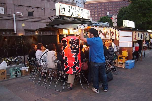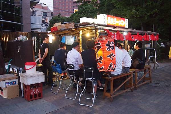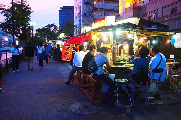 福岡另一獨特的名物,就是行走在路上的「屋台」;「屋台」其實是一家家以流動小車形式,合法領牌營業的小店,像是流動的居酒屋,聚集在一起便是有名的「屋台村」(日版大排檔???)每晚六時開始營業至凌晨,是日本的上班族下班後去喝酒、聚會、吃夜宵的麻甩消閒聚點。