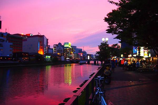 夕陽愈往下走,畫布的顏色變得更為突出,那珂川被動的映照出天上畫布的顏色,這風景可說是世界上最失真的美麗了!