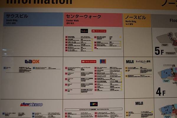 剛才說到,運河城分為南翼、北翼和中間區域三部分,總共六樓層;看到這塊指示板,婆婆估算應該有超過二百間店舖和餐廳了;