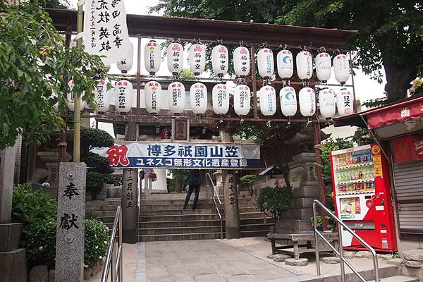 「川端商店街」的入口旁邊就是櫛田神社(的後門)入口。