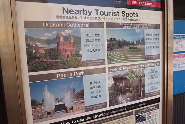 「長崎平和公園」、「原爆落下中心地公園」、「浦上天主堂」與「長崎原爆資料館」這4個地方相互在附近(位於長崎路面電車1、3號系統的「松山町」站),可以順道一同遊覽。