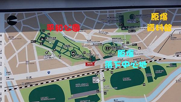 「原爆資料館」及「原爆落下中心地」在「平和公園」附近。