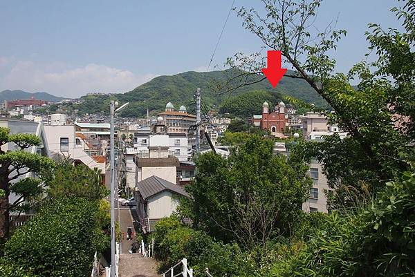「浦上天主堂」就在遠處的那邊。(箭嘴指)