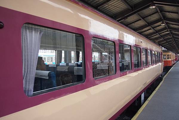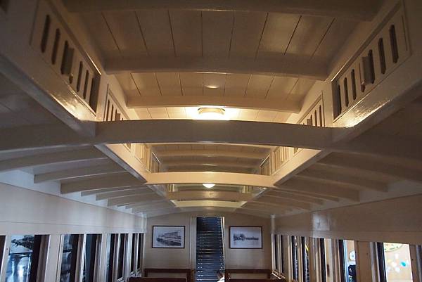 無論是車內的榻榻米座席、手動提拉窗、古舊罕見的木製車身,抑或是頗有建築難度的室內路軌……一擺設、一模樣、一材料均是模仿明治時代原來的設計,仔細重現出當時客車的模樣。