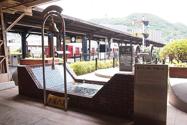 站頭擺放著充滿歷史價值的「啟程之鐘」及「幸福之泉」。