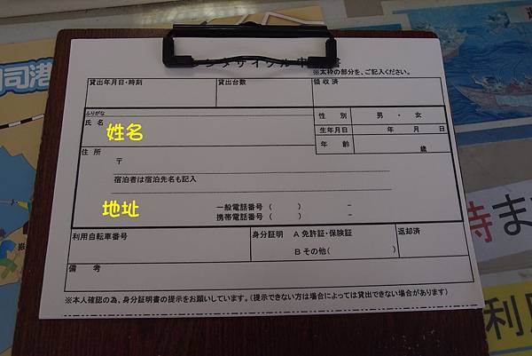 填妥簡單資料後,職員會說明租借單車的注意事項;(需要出示護照)
