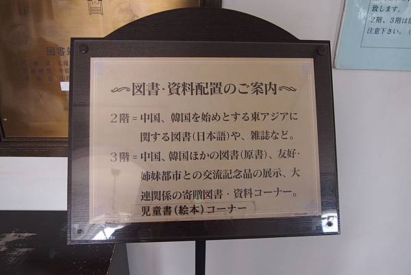 館內共有三層;一樓有中國餐廳大連槐花,二、三樓則是圖書館及資料展示室,除了收藏東亞各國有關的圖書約二萬冊外,亦有友好城市的相關資料展覽及錄像放映;