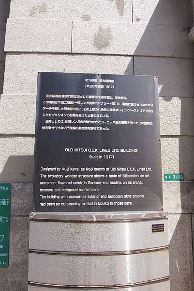 舊門司稅關 建於1912年,至1927年為止是海關廳舍使用空間,之後於1994年進行建築的修復及修繕工程,恢復其新文藝復興風格的近現代建築樣貌;其外牆由紅磚建成,象徵著當代的建築特徵。