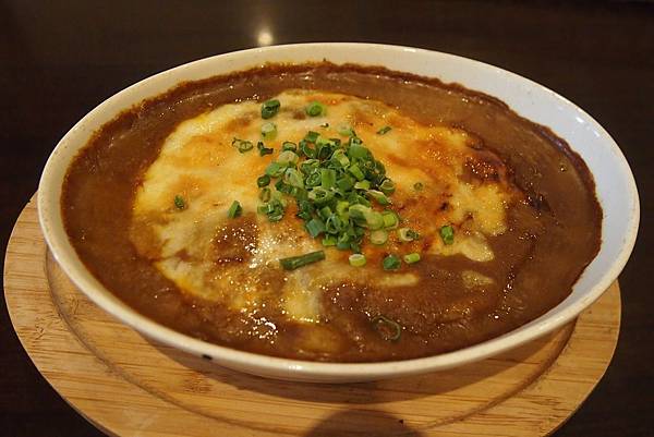 再者燒咖喱的賣相也是十分討好,碟內放著滿滿的咖喱汁,頂層蓋著一大片烤焦糖色澤的拉絲芝士,配上誘人香氣,完全引得老人家「五指大動」啊