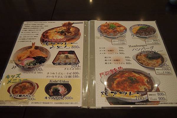 打開餐牌,除了主打燒咖喱飯及鳥冬之外,還有其他丼物、天婦羅等等。