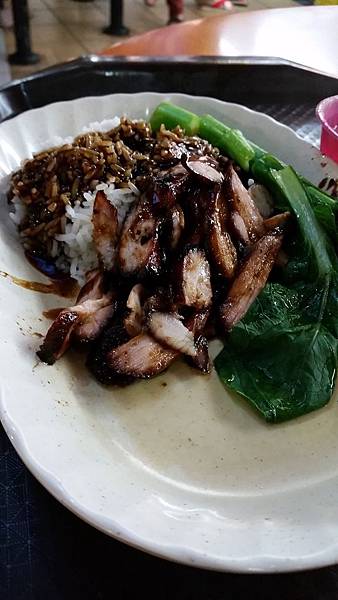 由於婆婆和婆友二人已經吃了雞飯、菜頭粿、囉惹,還有較早前吃的三餸飯,胃其實已經飽了七分,不過仍然點了一客小號「叉燒飯」。(只是七分嗎?睨