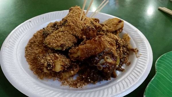 只是,砂糖混合濃醬的組合,對於習慣廣東口味的我們來說,實在過於重口味了~~>< 婆倆雖然已經很努力地不想浪費食物,盡量避開沾得太多醬的「上層」,挑些沒被波及的「下層」來吃,可惜到最後還是敗給濃烈奇特的蝦醬,吃不下去。
