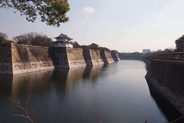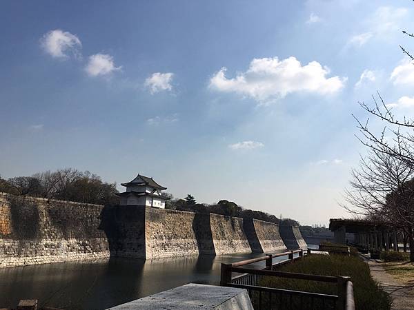 使用大量巨石堆砌、高於20米的石垣,總長長達12公里;配合寬達70—90米的雄偉護城河,是古時守護大阪城的前線「護衛」,亦是德川大阪城固若金湯的象徵。