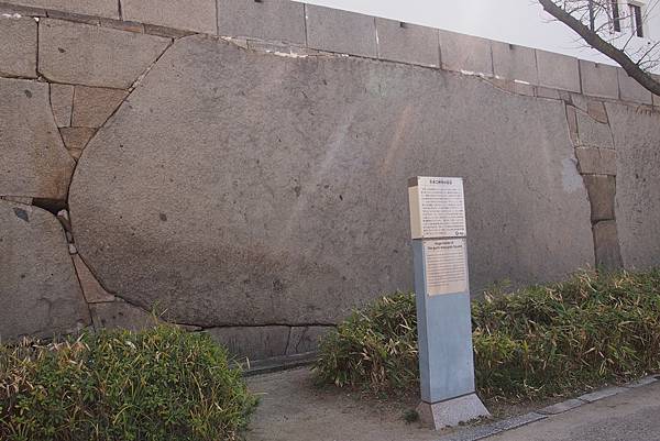 在大阪城內你會發現許多許多這樣大型的岩石,本來婆婆看著也只是覺得很有趣;後來回香港後翻查資料,才知道那是大阪城重建時需要使用的大岩石,用以興建抵禦用的城牆。