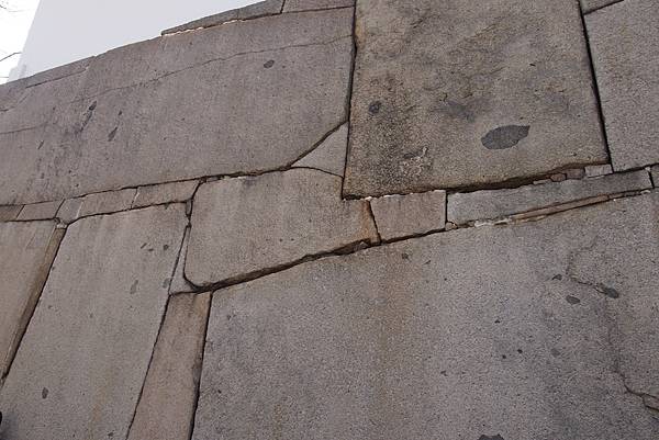 而岩石上部的凹凸部分,則是因為被明治維新時期的大火燒燬破壞。