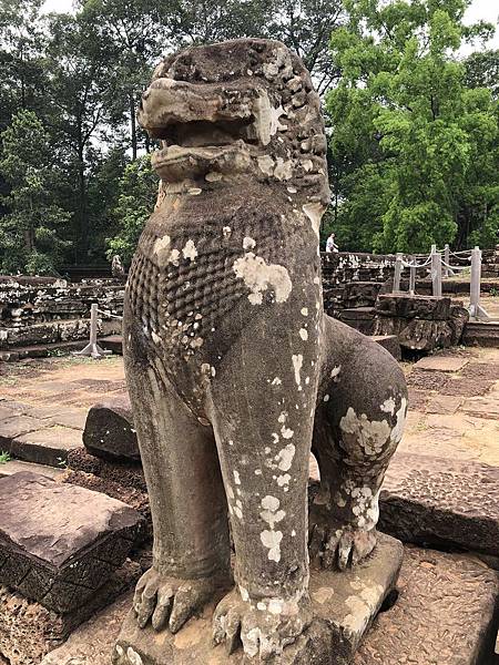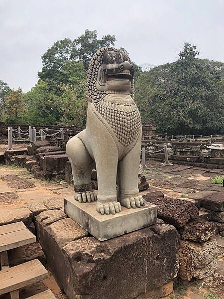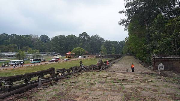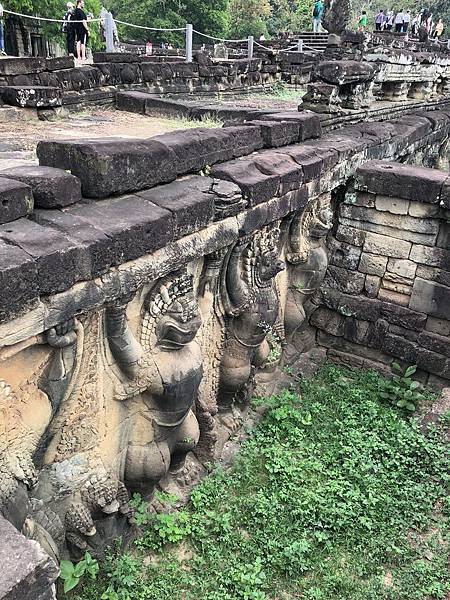 而南部的階梯可說是閱兵台的象徵了:三頭飾的大象為柱,象鼻捲著蓮花,忠誠地守護在石梯的兩側。